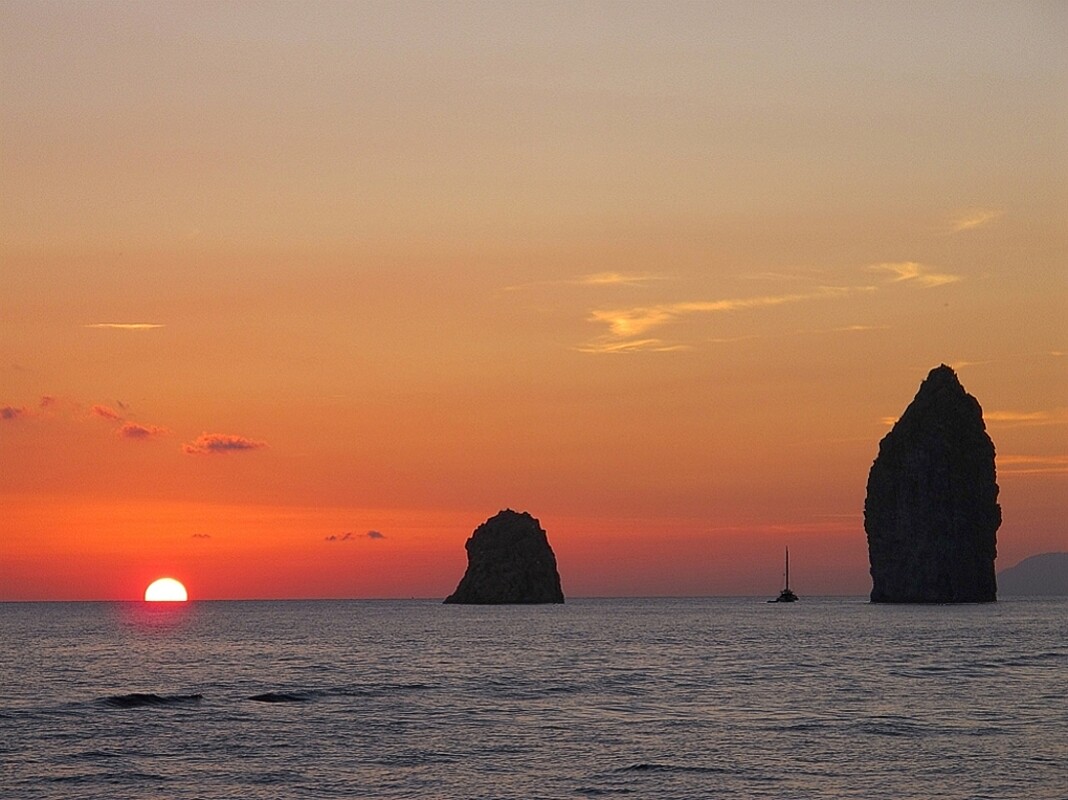 Sonnenuntergang bei den Faraglioni zwischen Vulcano und Lipari