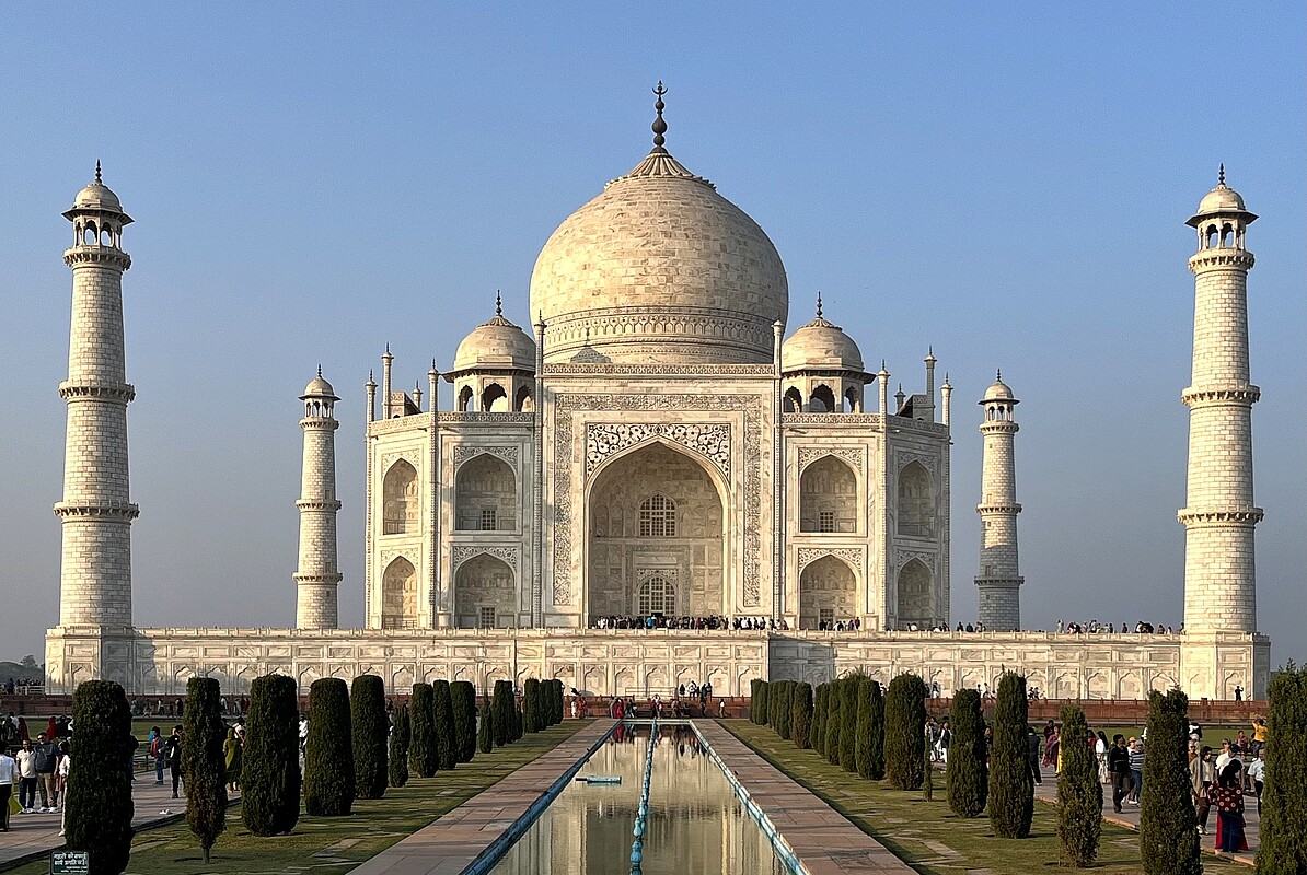 Neben modernen Metropolen, wie Delhi, Jaipur oder Agra, bestimmen auf dem Lande oder in historischen Altstädten oft noch Männer mit furchterregenden Schnurrbärten auf Kamelkarren oder überladenen Ochsengespannen und grellbunt in Saris gehüllte Frauen das lebendige Bild Rajasthans. Das Land, auf weite Strecken von der Wüste Thar und schönen Bergpanoramen geprägt, hat auf dieser kultur-geographischen Reise natürlich auch ihre naturgeographischen Aspekte. Und sie verbindet sich mit einem Besuch in Indiens Hauptstadt Delhi sowie Welterbestätten wie Amber, Jaisalmer und dem Taj Mahal, die auf intensive Verbindungen zu Mittelasien mit der Kultur des Mogulreichs verweisen.