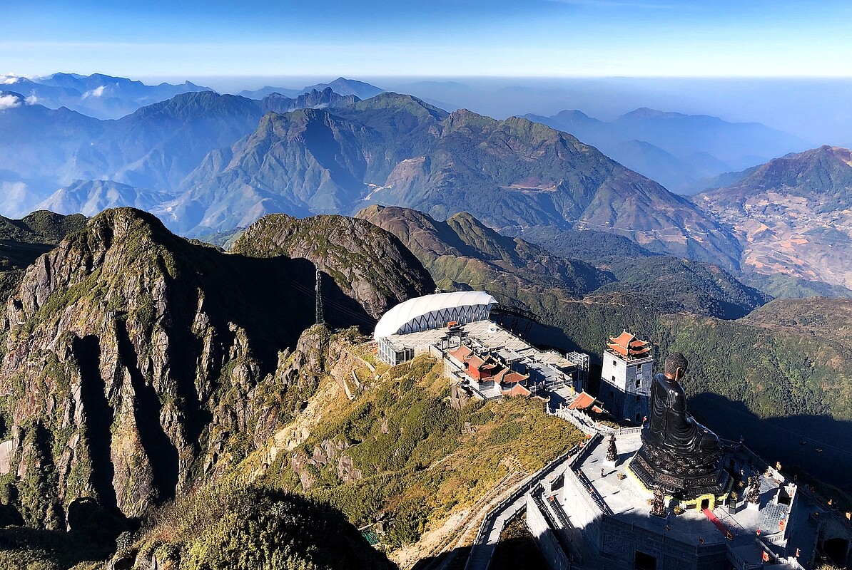■ Phan Si Pặng (Fansipan): der mit 3143 m Höhe im Hoàng Liên-Nationalpark ist nicht nur der höchste Gipfel Vietnams, sondern zugleich auch vom südostasiatischen Festland. Seit 2016 führt eine 6292 m lange Seilbahn auf den Gipfel und überwindet dabei 1410 Höhenmeter, während eine Besteigung zu Fuß bis zu drei Tage in Anspruch nehmen kann.