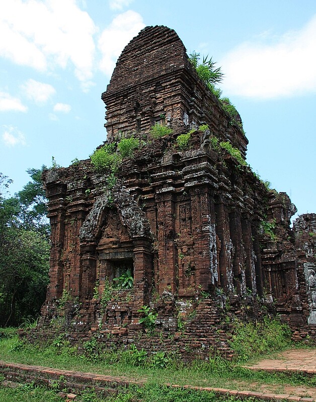 ■ My Son: im 4. Jahrhundert ließ König Bhadravarman in einem Talkessel ein erstes Heiligtum für den hinduistischen Gott Shiva errichten. Die ursprünglich aus Holz errichteten Gebäude wurden im 7. Jh. durch Ziegelbauten ersetzt, die Anlage bis ins 14. Jh. stetig erweitert. Archäologen nehmen an, daß die über Jahrhunderte entstandene Tempelstadt von den Cham als Reich der Götter und Gottkönige errichtet wurde. Die zahlreichen Tempeltürme symbolisieren dabei den Berg Mehru, im hinduistischen Glauben der Sitz der Götter. Vom damaligen Glanz der Hochkultur geben die, nach dem Verfall des Reiches vom Wald überwucherten Ruinen bis heute imposantes Zeugnis: sämtliche Bauten wurden ohne Mörtel aufgeschichtet.
